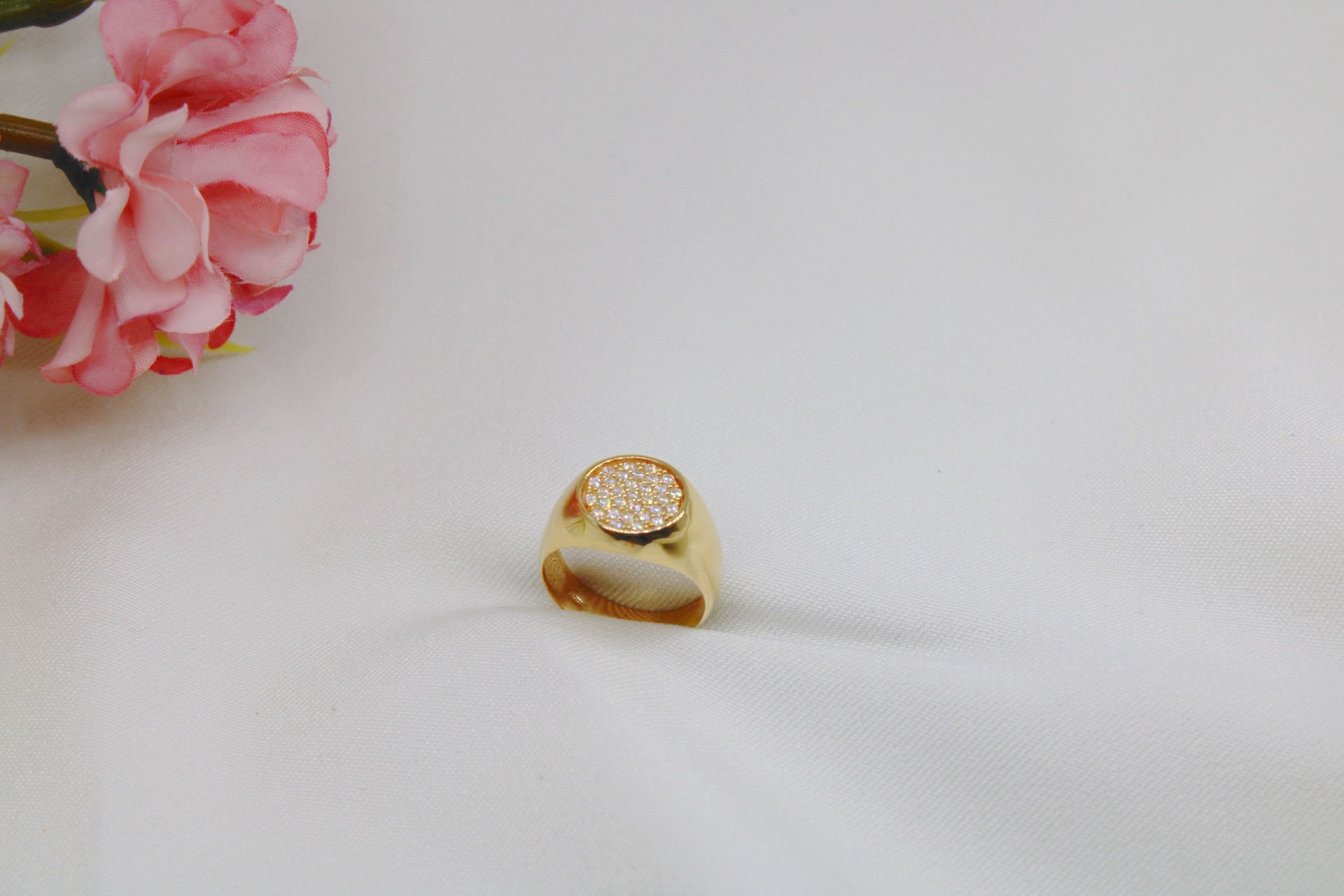 Chevalier tondo realizzato a mano in oro 18k con pavè di zirconi.